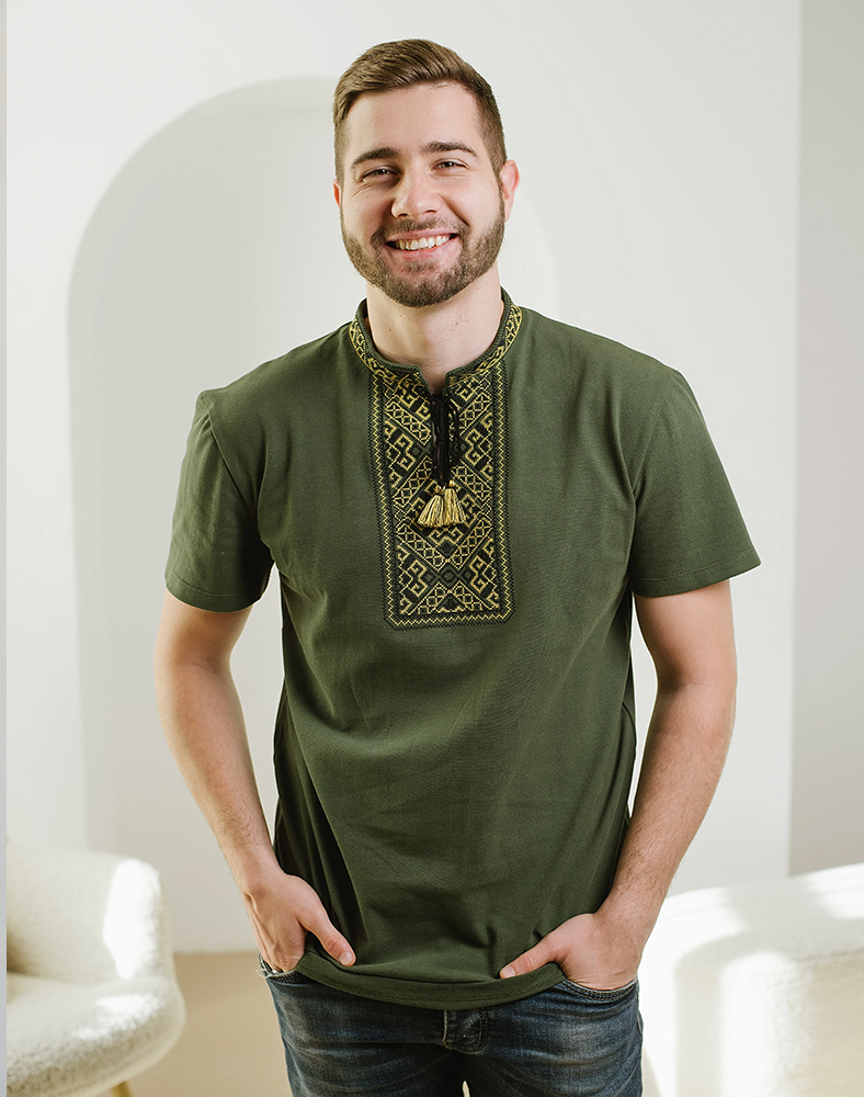 Сучасна класика в патріотичному стилі. Насичений хакі колір і жовта вишивка утворюють ефектний контраст, що підкреслює характер і впевненість.