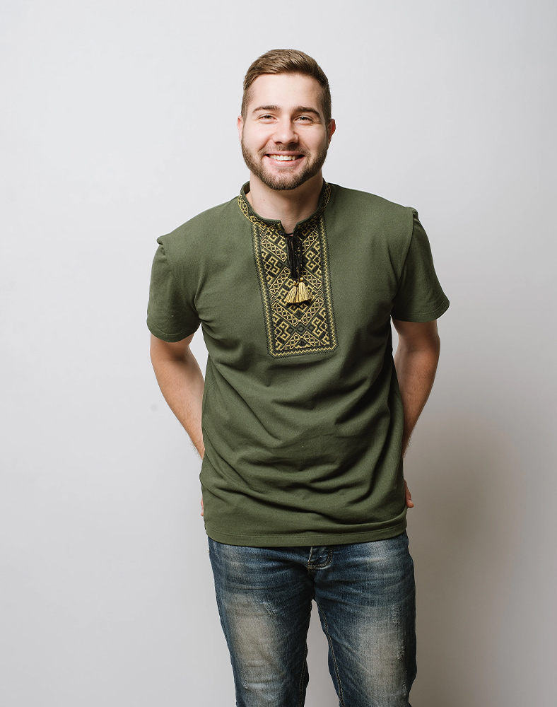 Чоловіча футболка-вишиванка “Традиція” — хакі з жовтою вишивкою