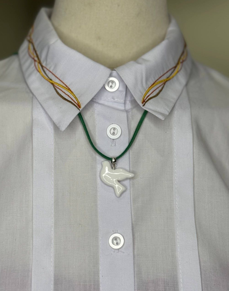 Нежное белое украшение с подвеской в форме птички — это лаконичный и символичный аксессуар, который легко дополнит как праздничный, так и повседневный образ. Белый цвет выглядит чисто, спокойно и универсально, поэтому украшение хорошо сочетается с вышиванкой, рубашкой, платьем или базовой одеждой. Подвеска без росписи имеет сдержанный вид и подойдёт тем, кто любит минимализм и нежные детали. Нейлоновый шнурочек входит в стоимость и делает украшение удобным для ежедневного ношения. Преимущества: • подвеска в форме птички; • белый универсальный цвет; • без росписи — сдержанный минималистичный вид; • лёгкое и удобное украшение; • нейлоновые шнурочки входят в стоимость; • можно дополнительно выбрать замшевый шнурок.