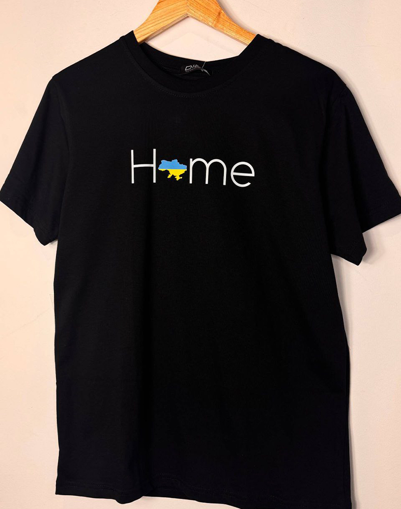 Патріотична футболка Home — це простий, але дуже сильний меседж. Слово Home з елементом української символіки читається без зайвих пояснень: дім там, де Україна. Саме такі футболки шукають ті, хто хоче показати свою позицію спокійно, сучасно й без пафосу.