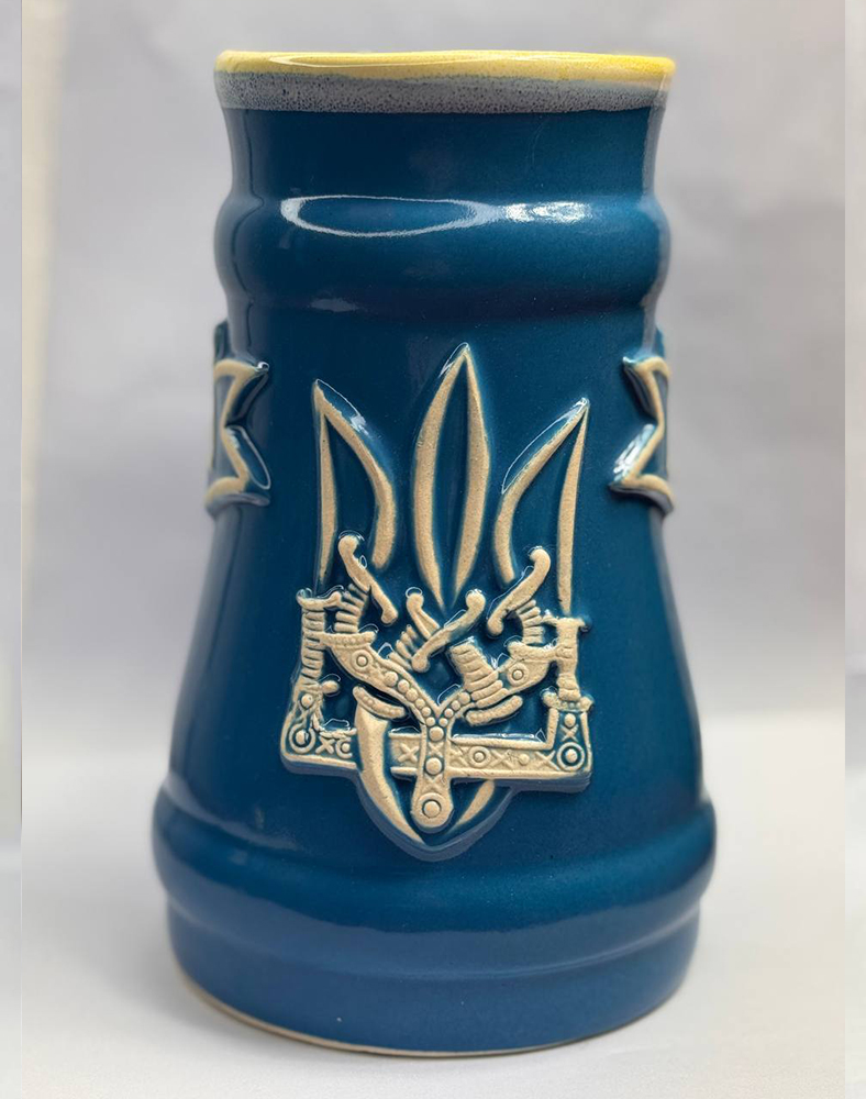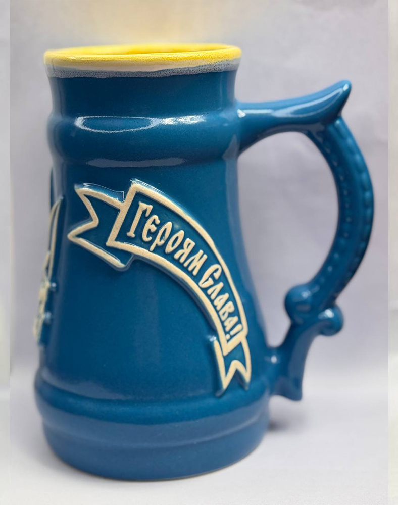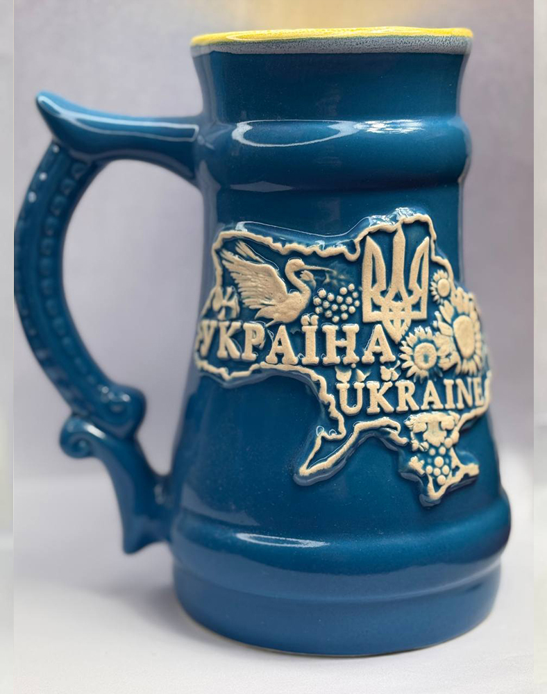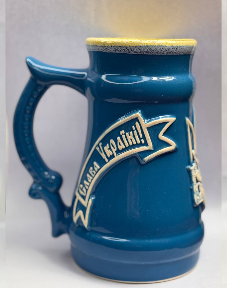 Пивний келих 1 л “Україна” синій – Тризуб, Слава Україні, Героям Слава | Керамічний глиняний келих