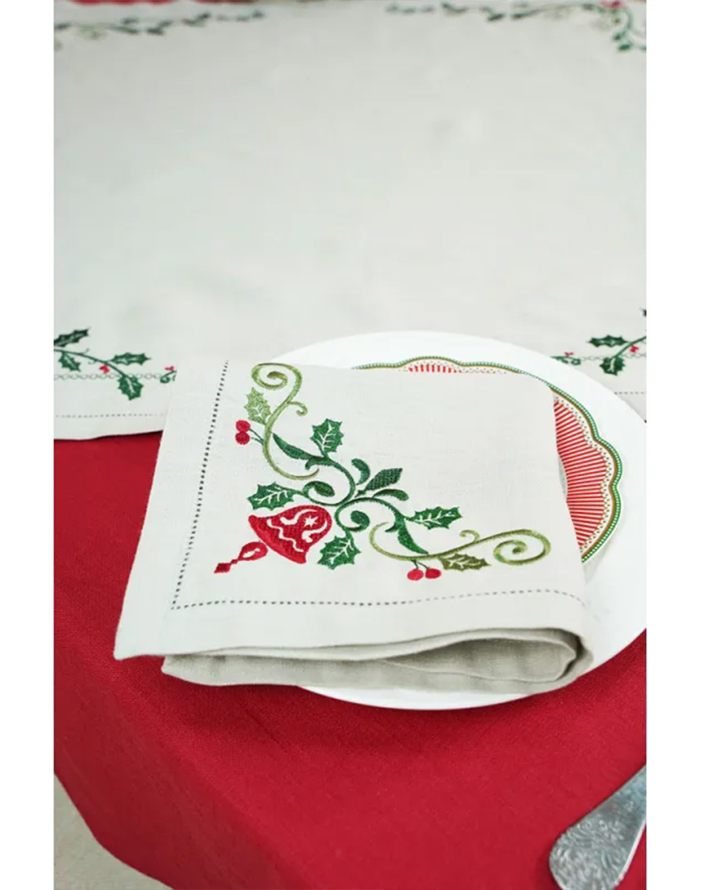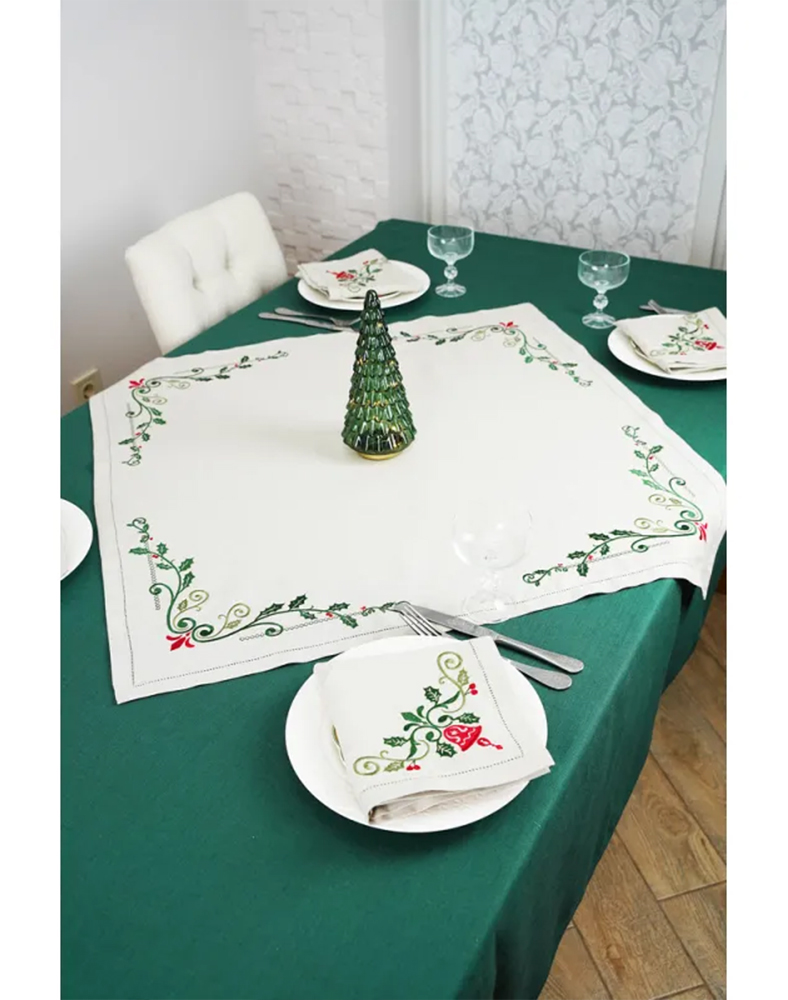 Завдяки поєднанню льону, святкового орнаменту та натуральної палітри набір створює теплу різдвяну атмосферу і підкреслює красу святкового сервізу. Це ідеальний вибір для сімейних вечерь, різдвяних зустрічей і як продуманий подарунок на Новий рік. Кожен комплект постачається у подарунковому пакуванні, що робить його ще більш привабливим.