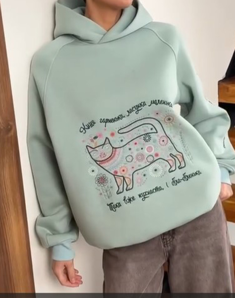 Худі легко поєднується з джинсами, спортивними штанами і легінсами. Підійде для прогулянок, дому, навчання чи подорожей. Чудовий варіант для всіх, хто любить котиків і цінує комфорт.