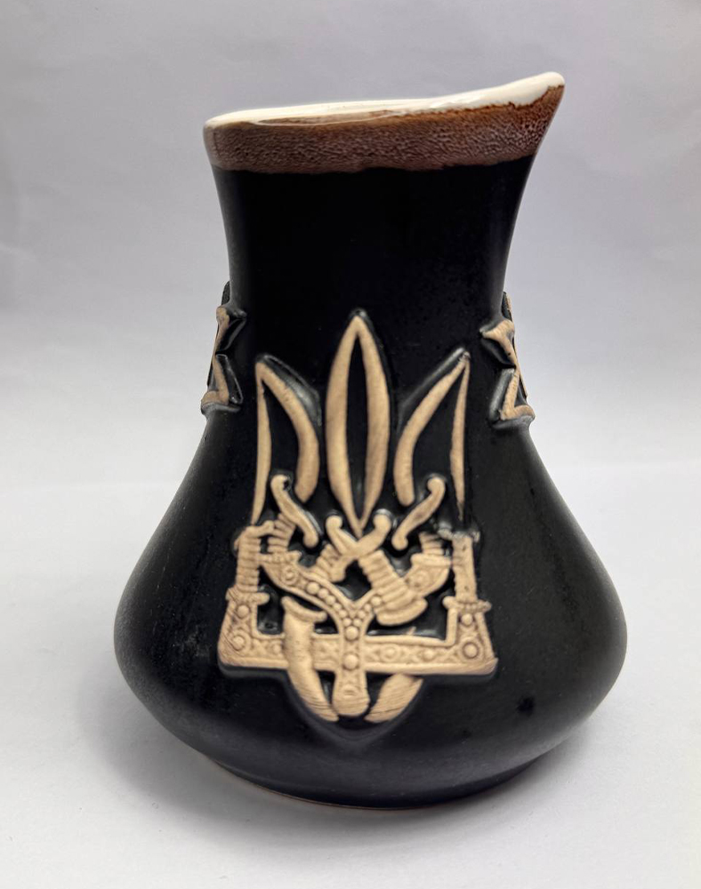 Пивний келих 1 літр “Тризуб Україна” – керамічний глиняний, червоно-чорний глянсовий | Патріотичний келих