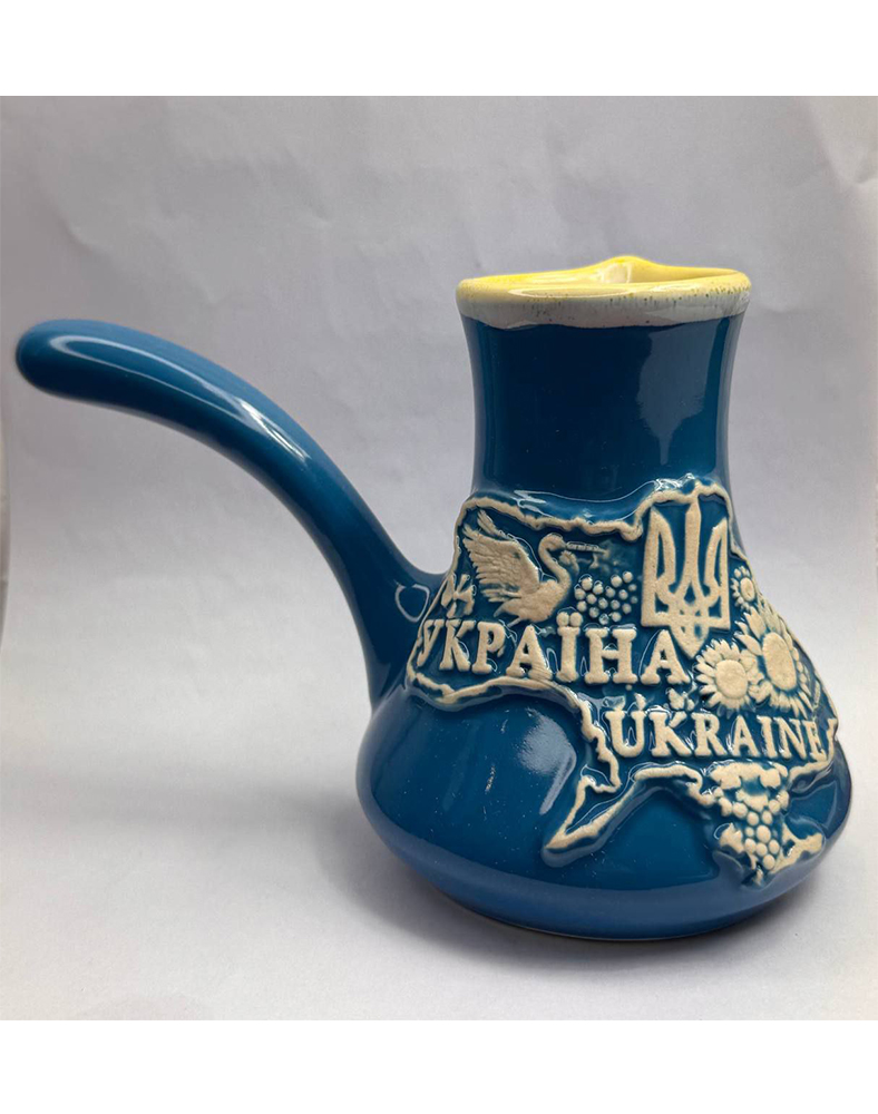 Турка керамічна глиняна “Карта України” синя | Патріотична турка для кави