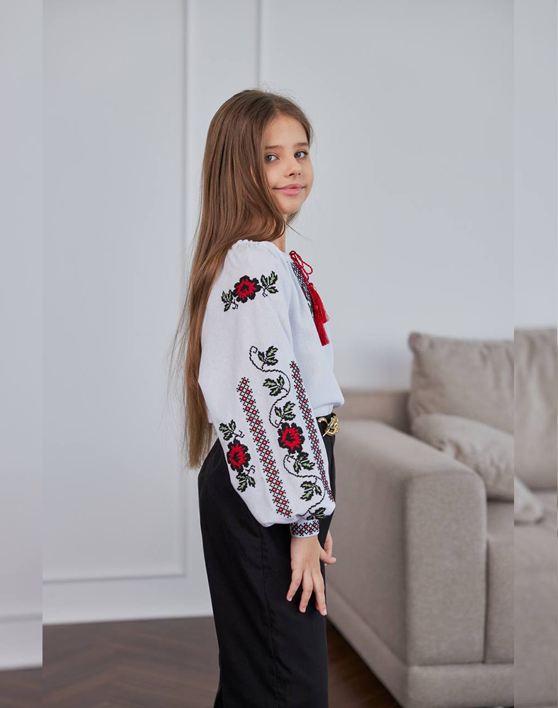 Ця вишиванка для дівчинки виготовлена з натуральної тканини (льон і бавовна), що забезпечує легкість і комфорт навіть у спекотні дні. Вона приємна до тіла, не викликає подразнень і підходить для щоденного носіння.