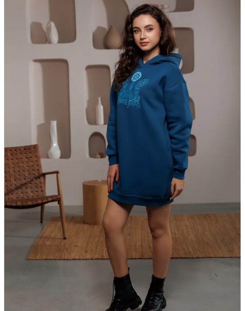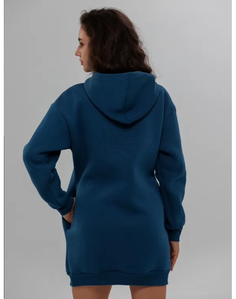 Подовжений фасон дозволяє носити туніку як сукню-худі, як затишний повсякденний варіант під легінси або як стильний елемент спортивно-міського гардеробу. Модель має капюшон, м’які манжети та зручний вільний крій — усе, що потрібно для комфорту в осінньо-зимовий період.