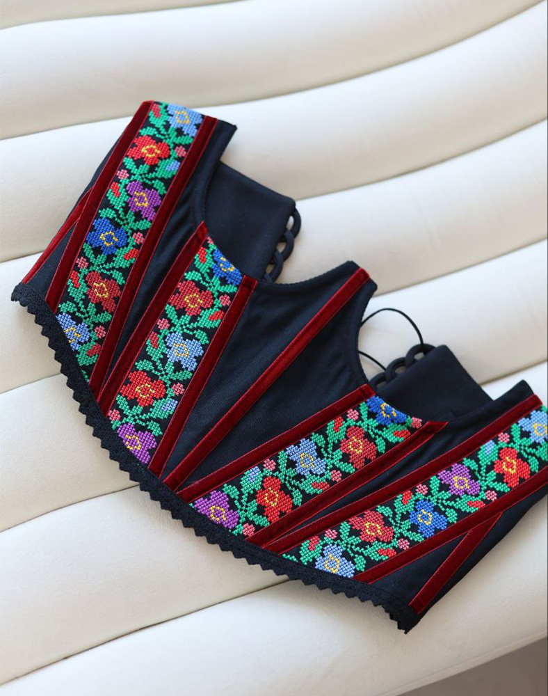 Підгрудний формат красиво підкреслює талію, формує силует і водночас залишається комфортним для носіння. Корсет можна поєднувати з білою сорочкою, сукнею, базовим топом або навіть светром — він додає образу етнічного шарму та виразності.