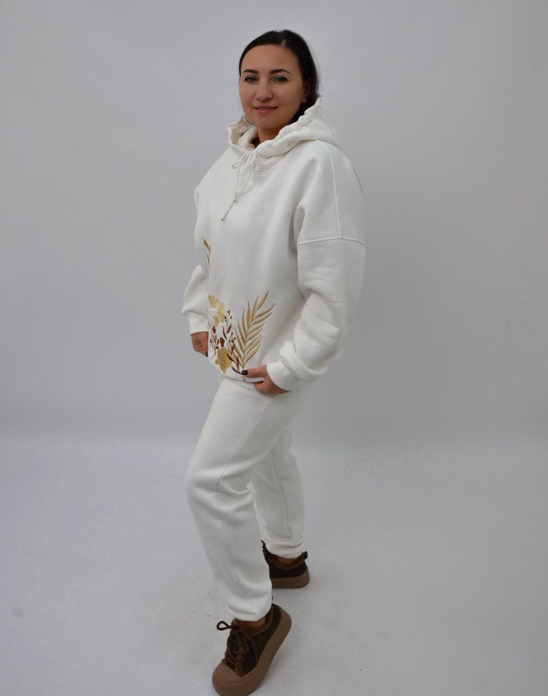 М’яка тканина приємна до тіла, добре зберігає тепло та не викликає дискомфорту. Худі з капюшоном і кишенею-кенгуру виглядає стильно та зручно у повсякденному носінні, а штани прямого крою забезпечують свободу рухів.