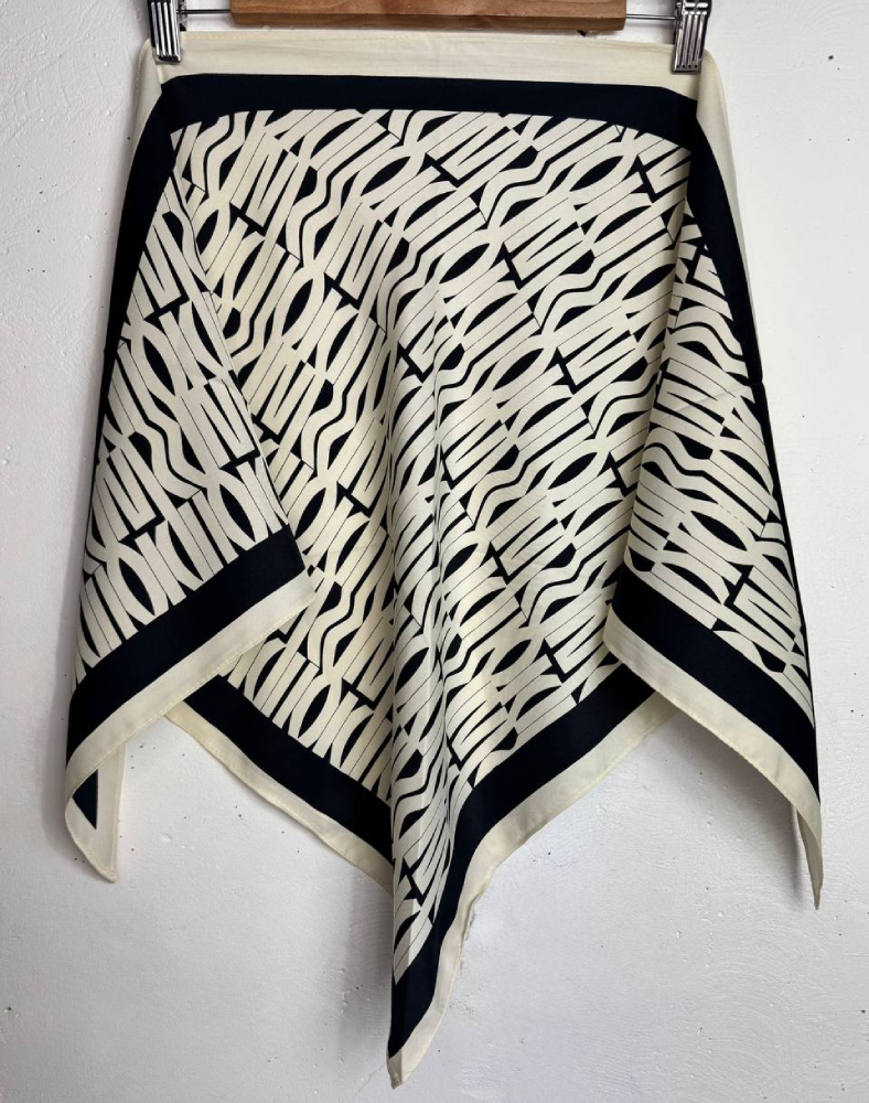 Благодаря сочетанию классических цветов и современного абстрактного рисунка эта бандана выглядит аккуратно, изысканно и универсально. Она станет отличным выбором для тех, кто ценит аксессуары с минималистичным, но выразительным дизайном.