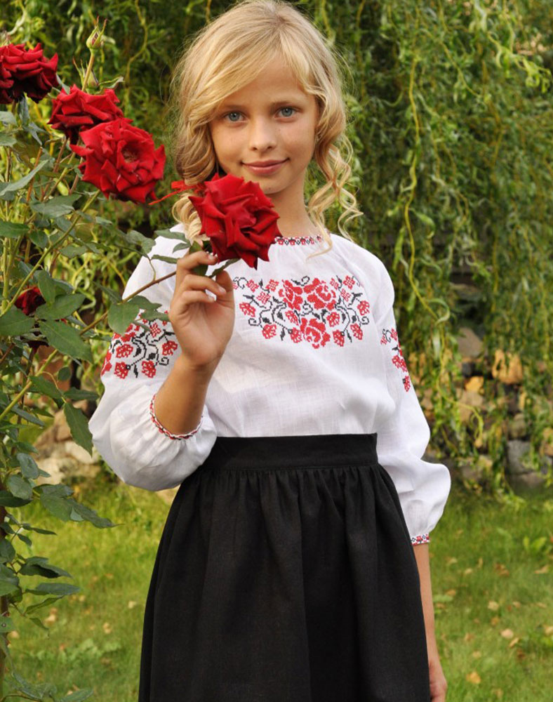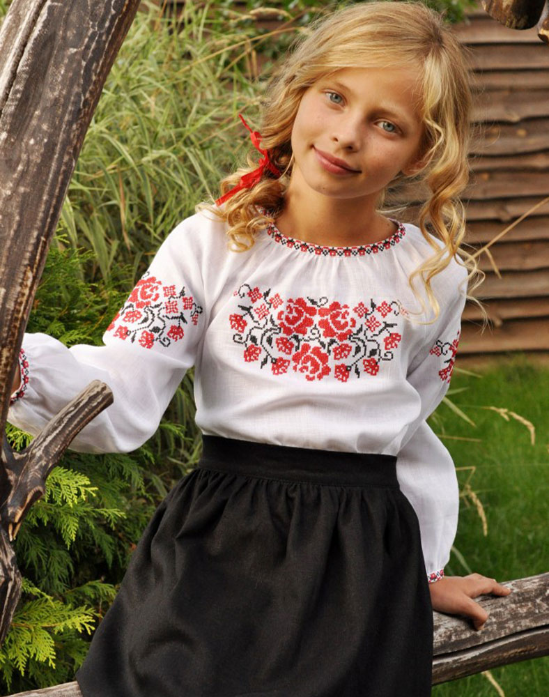 Белая блуза для девочки с традиционной вышивкой Модель Д042/2-212