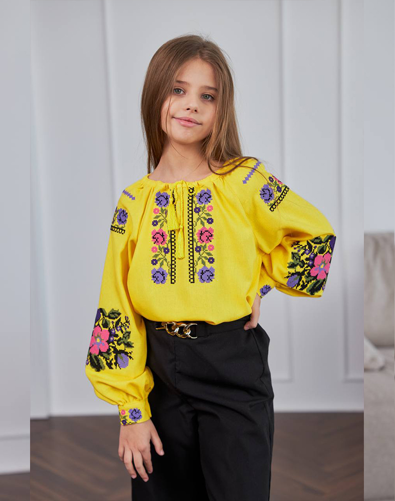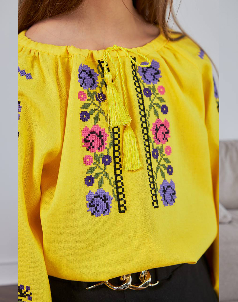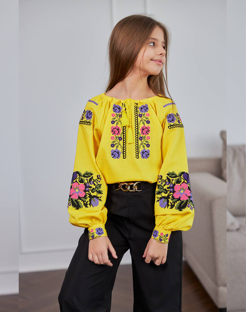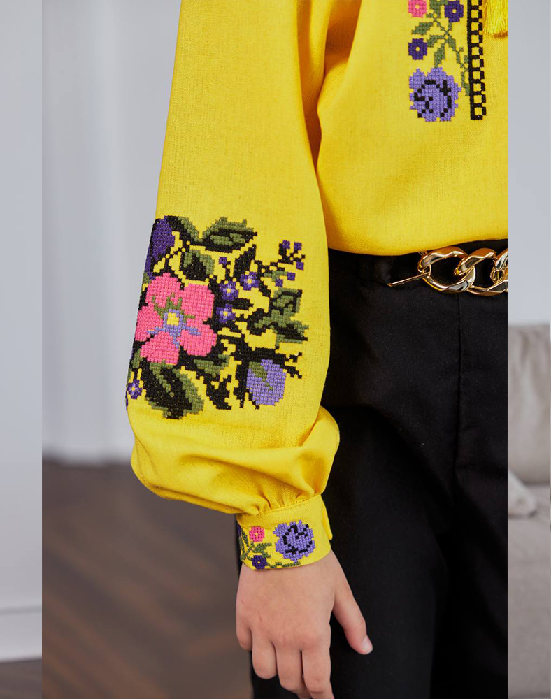 Яркая вышиванка «Пионы» в солнечном желтом цвете дарит хорошее настроение и подчеркивает радость детства. Контрастная вышивка нежных цветов символизирует счастье, красоту и любовь, а натуральная ткань обеспечивает комфорт даже в самые активные дни. Идеальный вариант для праздников и торжественных мероприятий.