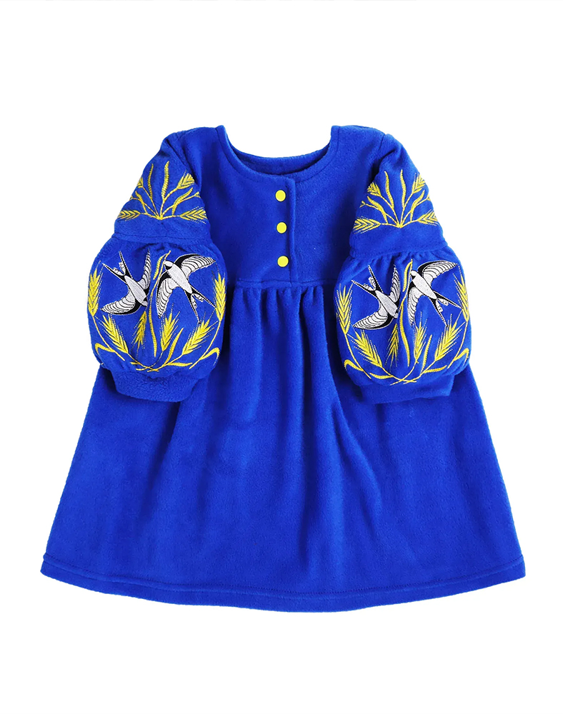 Детское флисовое платье «Лилея» с вышивкой ласточек и колосков
