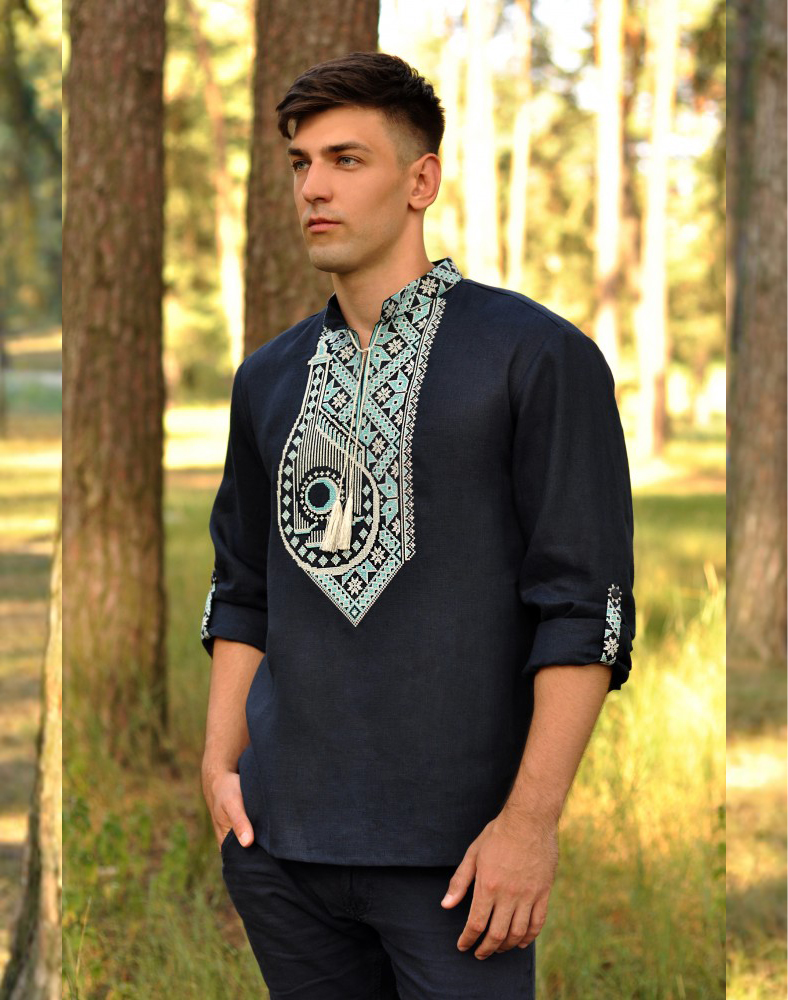 Цвет вышивки отлично гармонирует с цветом льна, из которого изготовлена ​​рубашка.