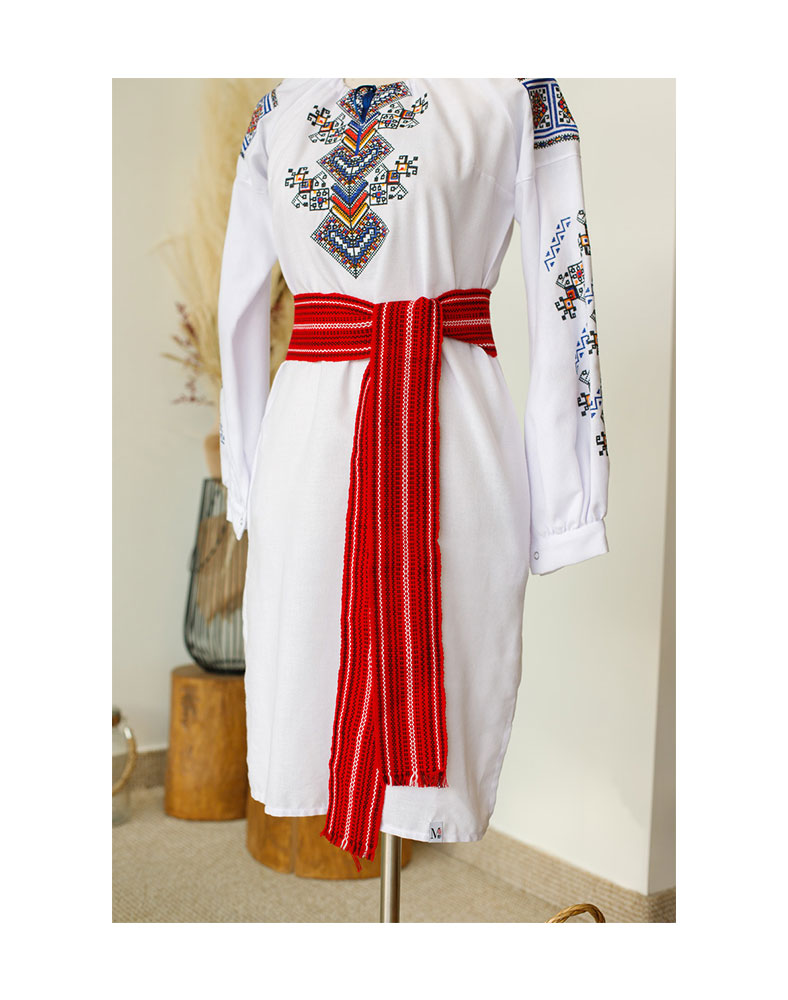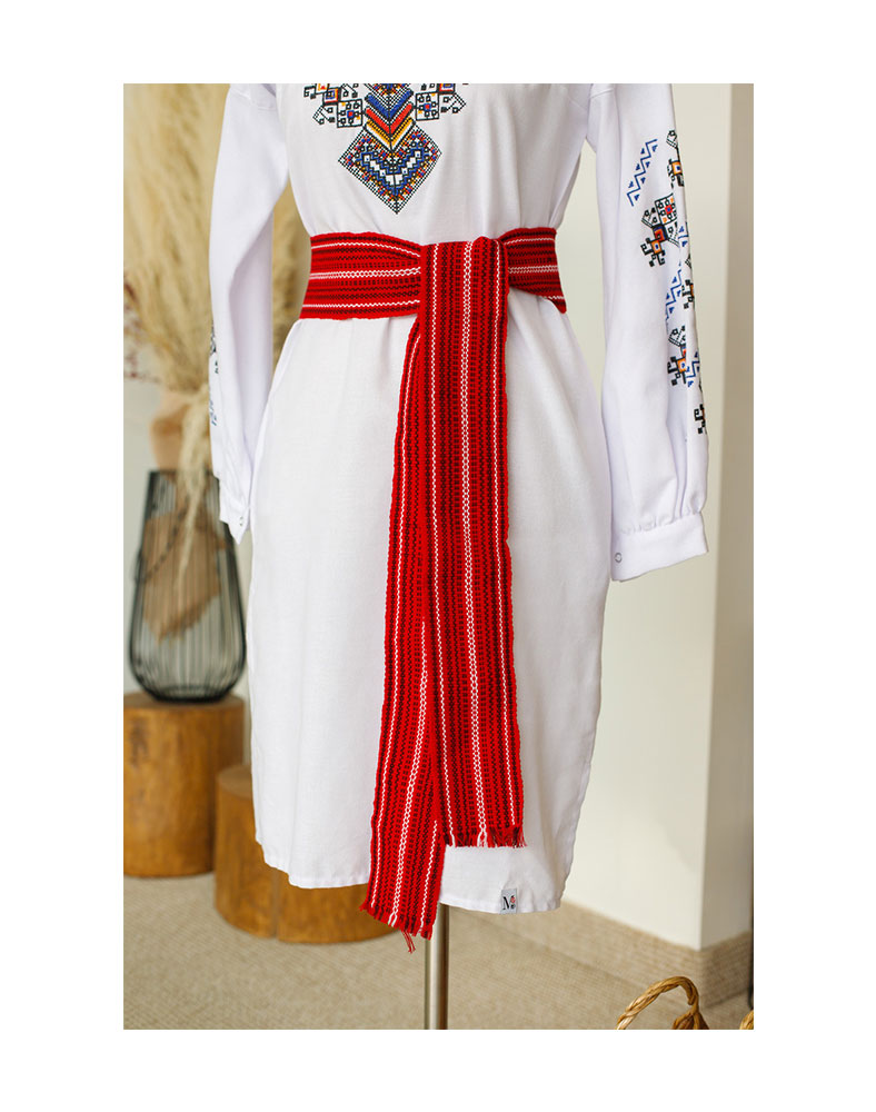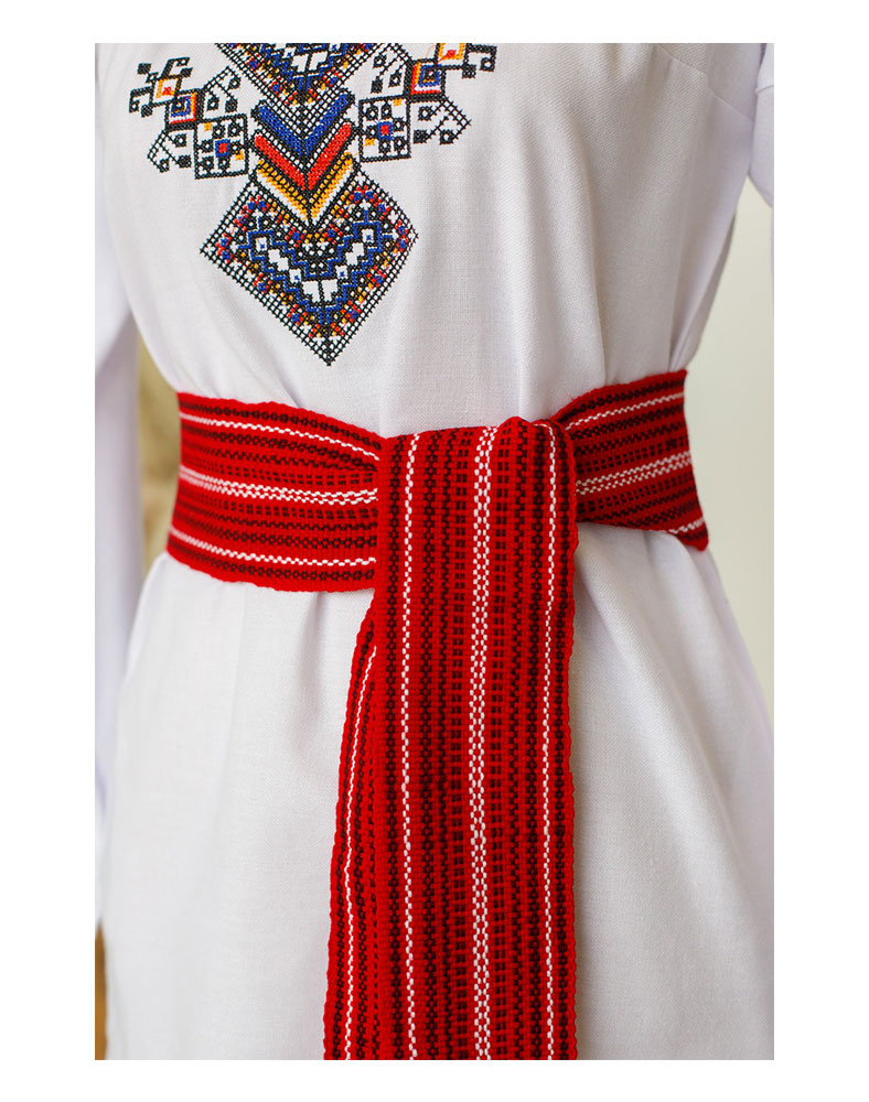 Широкий красный крайка — традиционный элемент украинской национальной одежды, придающий образу торжественности и аутентичности. Широкий тканый пояс эффектно смотрится на фоне вышиванки и подчёркивает талию.