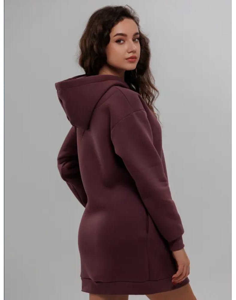 Удлинённый крой делает тунику универсальной: её можно носить как короткое платье-худи, как тёплую тунику с леггинсами или как стильный casual-вариант для повседневного образа. Длинный рукав, капюшон и мягкие усиленные манжеты обеспечивают комфорт в любое время года.