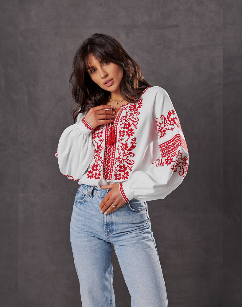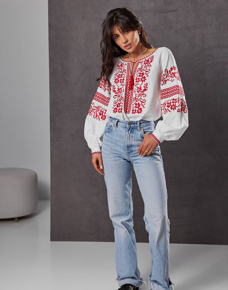 Выразительная вышиванка, за которой точно захочется вернуться. Натуральная ткань, продуманный крой и вышивка красными хлопковыми нитями делают ее уникальной. Эта женская рубашка – гармония украинской традиции и современного стиля. Она отлично подходит как к джинсам, так и к классической одежде, придавая образу уверенности и утонченности.