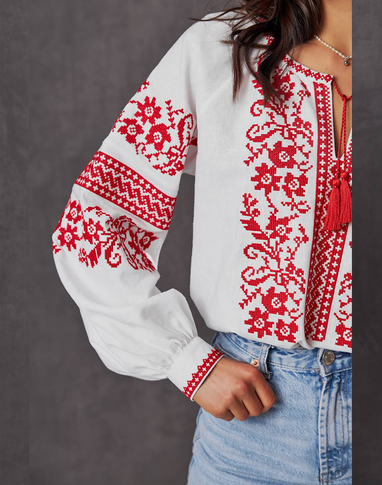 • Вышивка: машинная, крестиком, красными хлопковыми нитями;