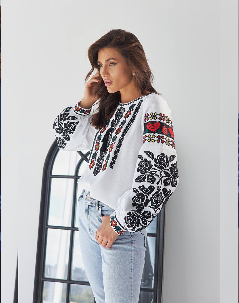 Классика в современном исполнении. Вышиванка "Розы" сочетает в себе традиционный черный и красный орнамент с элегантным современным кроем. Натуральная ткань дарит комфорт, а вышивка хлопчатобумажными нитями придает выразительность и долговечность. Идеальный выбор для тех, кто ценит украинские традиции и в то же время хочет выглядеть стильно.
