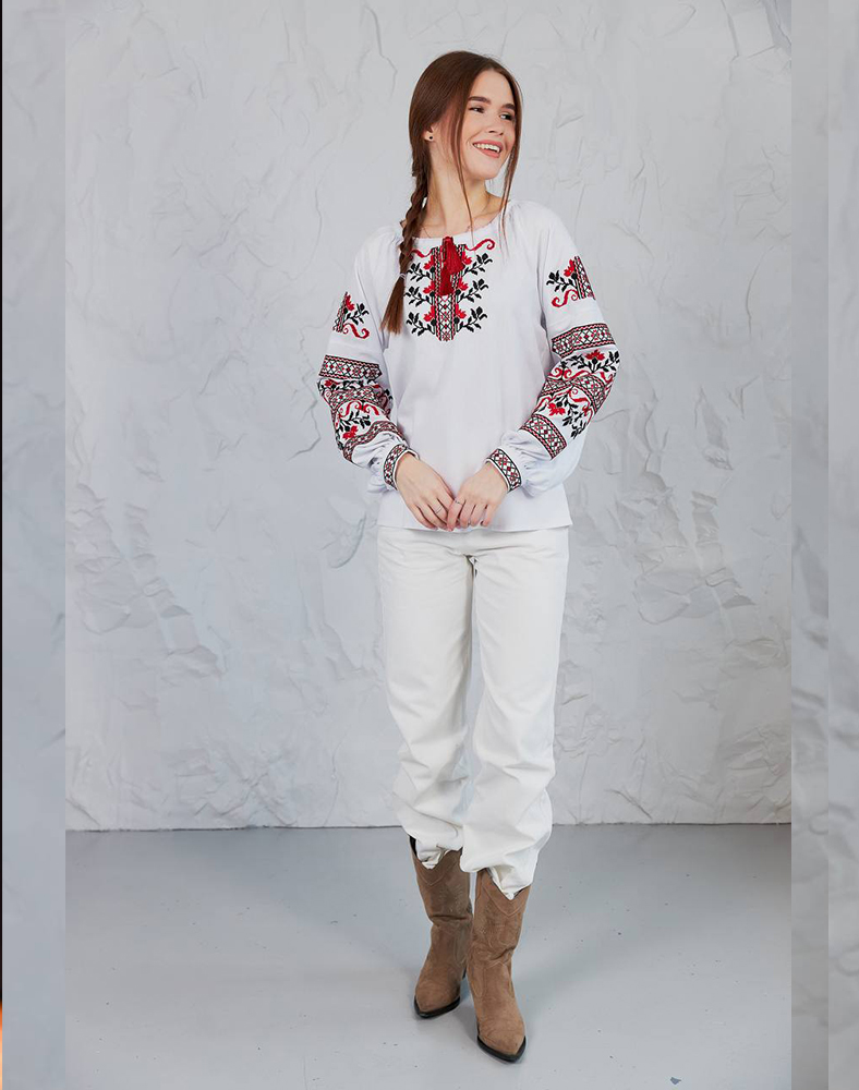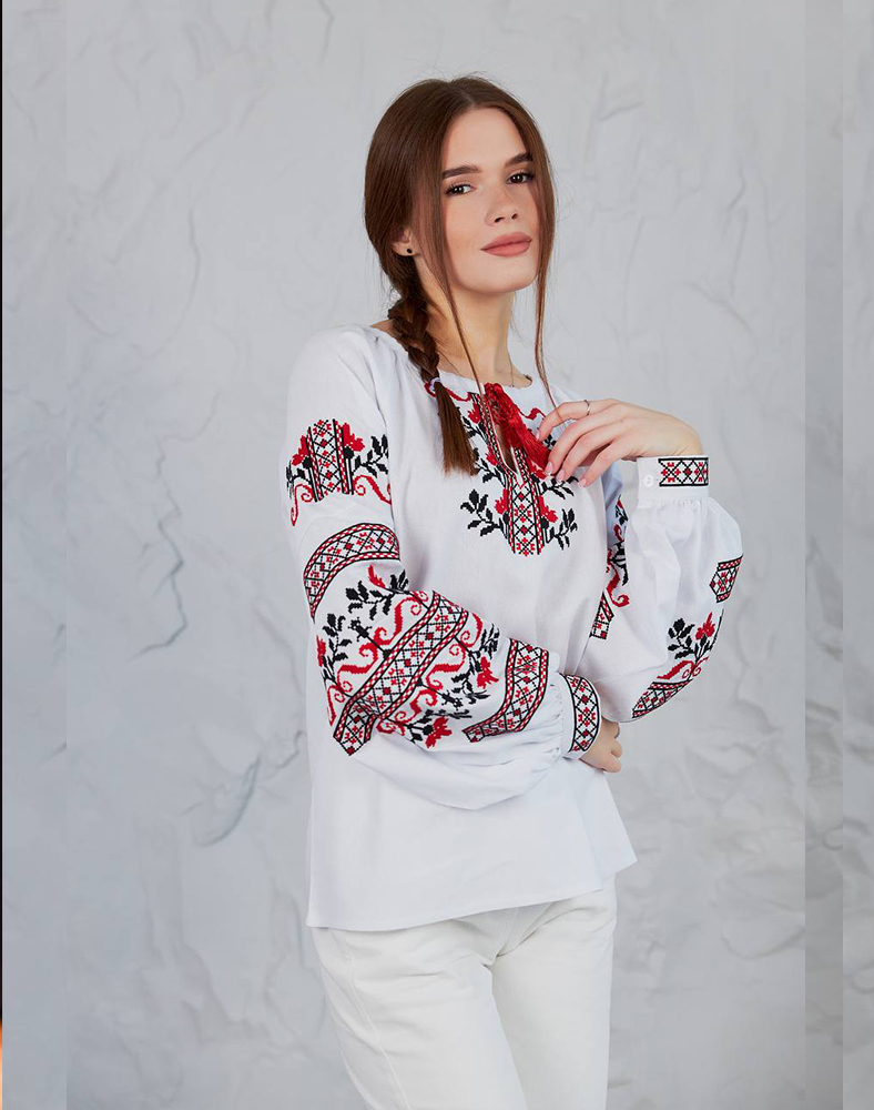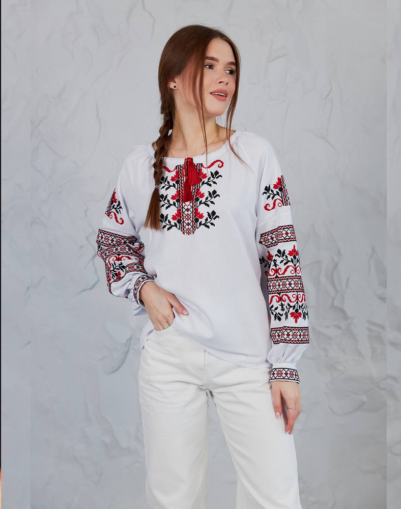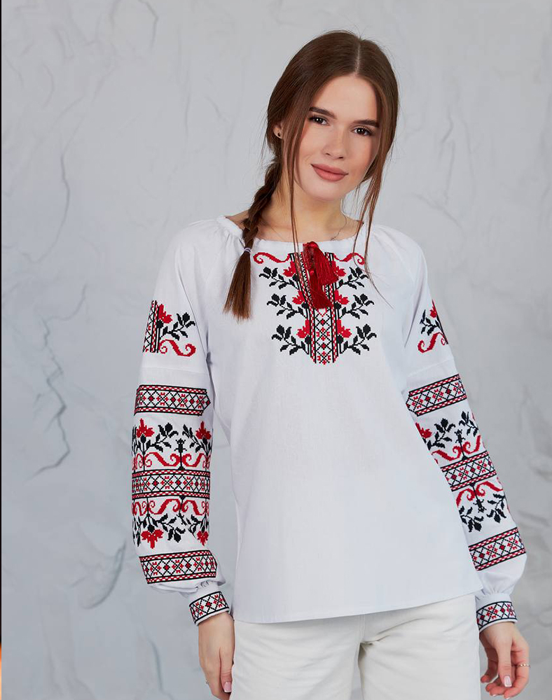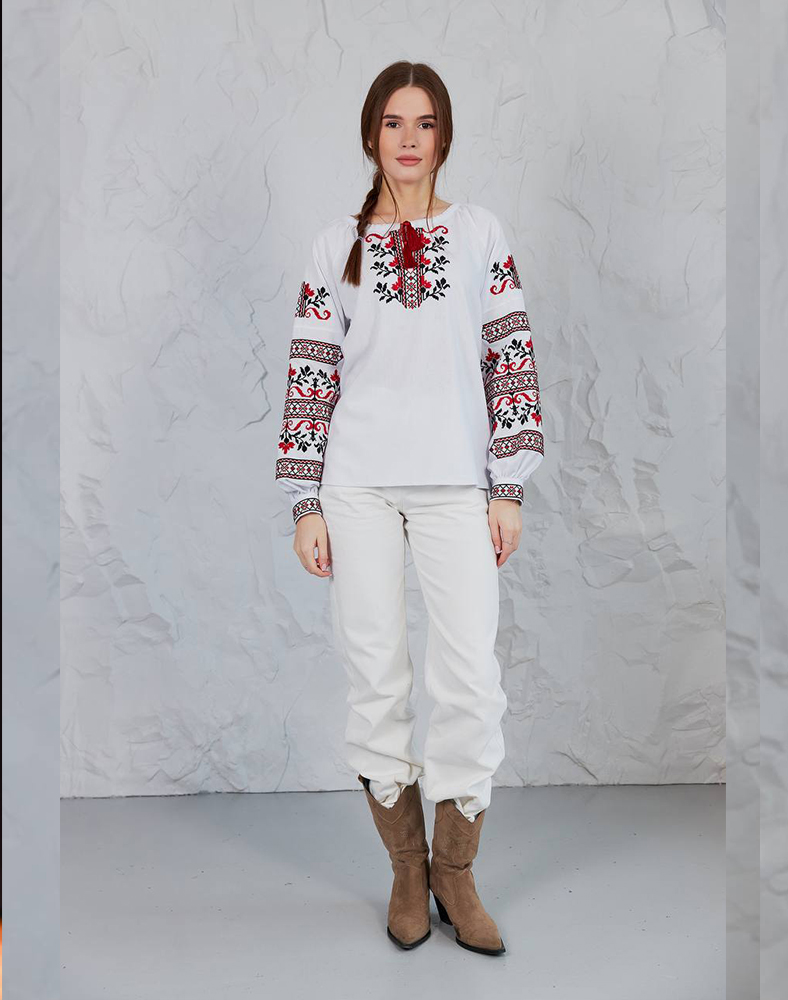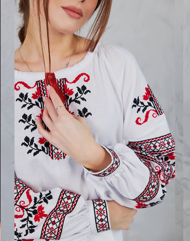 Рубашка «Виктория» – это символ веры, мира и победы. Вышивка в классической красно-черной гамме украшает грудь и рукава, создавая гармоничный и выразительный образ. Благодаря натуральной ткани из льна с примесями вискозы рубашка легкая, дышит и комфортна в носке. Это современная интерпретация украинской традиции, подходящей как для торжеств, так и для повседневного стиля.