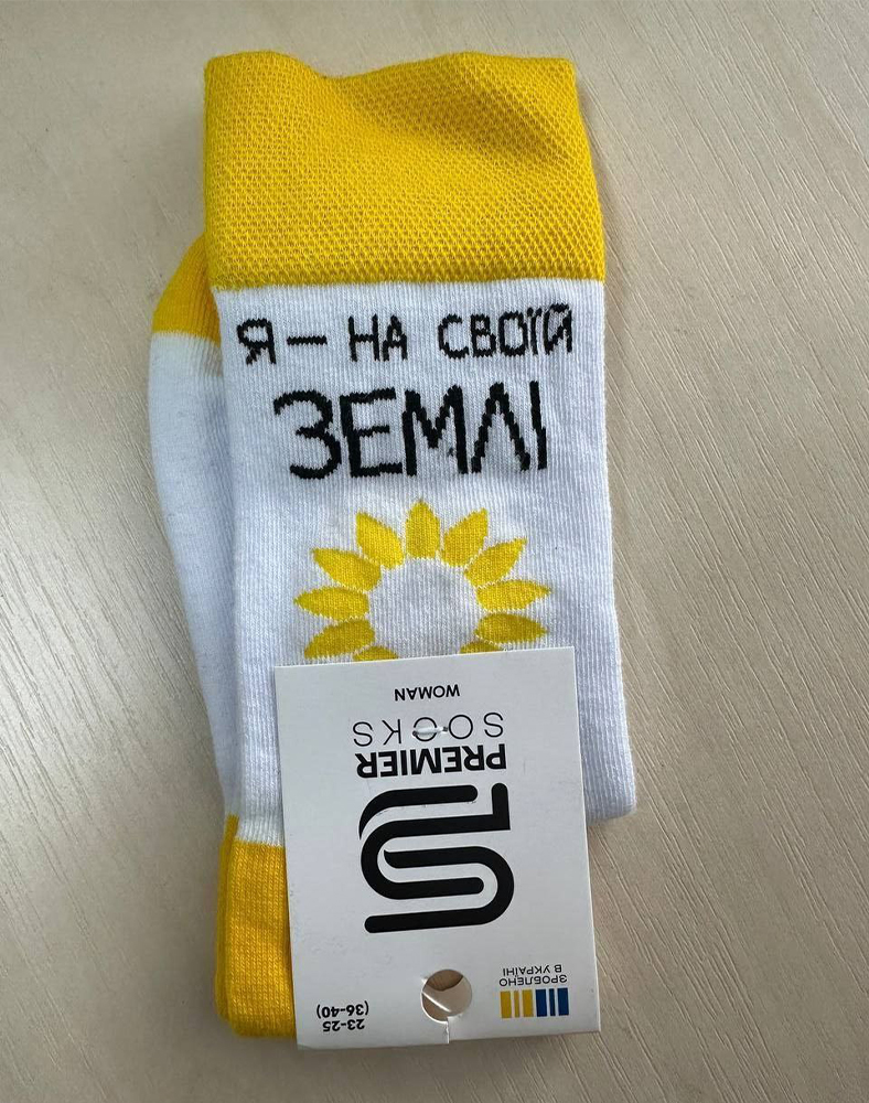 Женские носки украинского производства с надписью «Я — на своей земле»