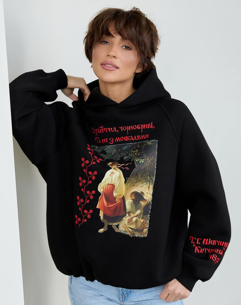 Ищете стильное и тёплое женское худи с украинским характером? Эта модель с принтом Тараса Шевченко и декоративными элементами — идеальный выбор для тех, кто ценит комфорт и украинскую аутентичность.