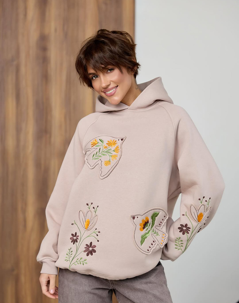 Ярочная цветочная вышивка придаёт худи стильный вид и делает образ особенным — окружающие точно обратят внимание.